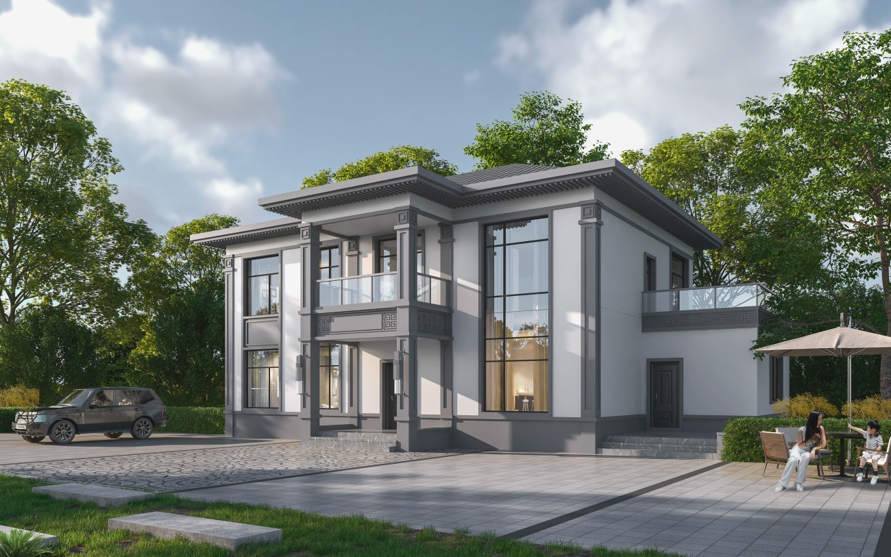 石河子005 两层新中式(11.36x11.76米)-【易设计】